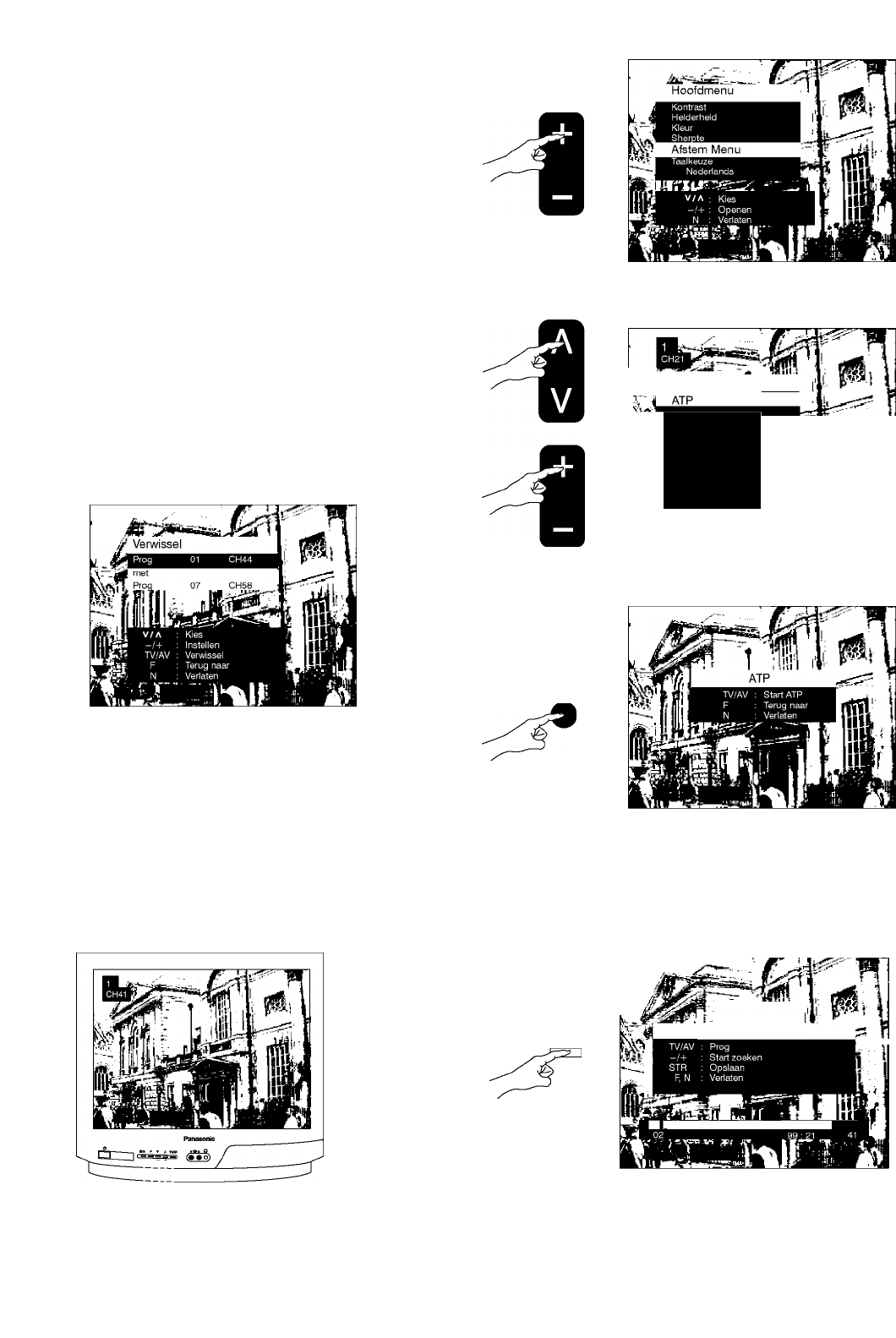 U kunt tevens de toetsen op het voorpaneei van de televisie